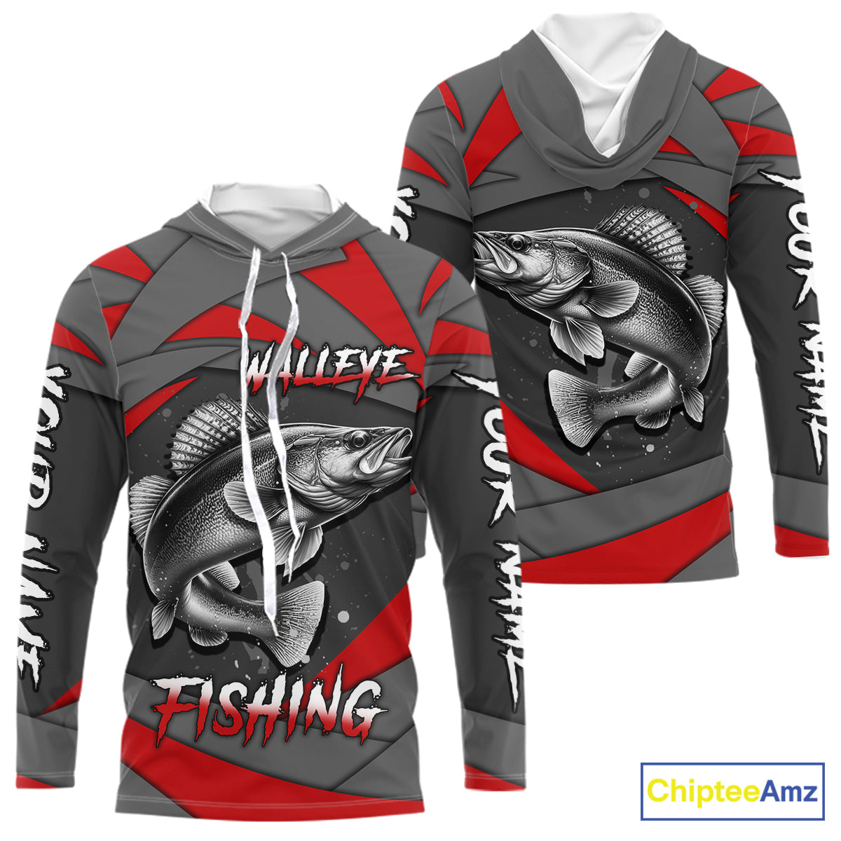 Gray and Red Walleye Fishing Jersey Custom Walleye Fishing Shirt for Team, personalized fishing gifts NQS10899