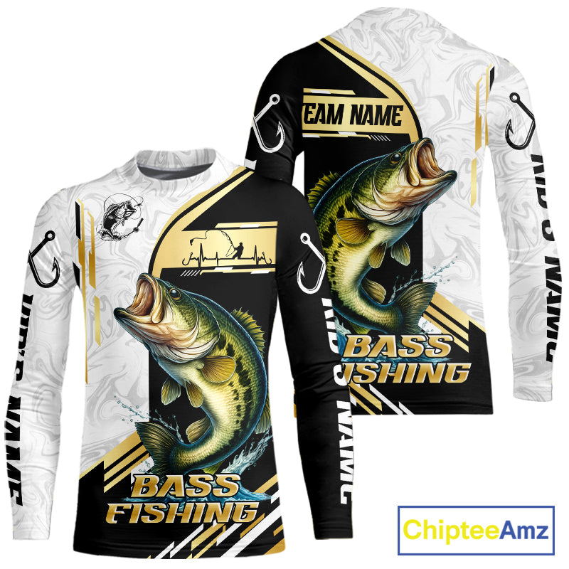 Personaized name Largemouth Bass fishing Custom sun protection Bass fishing team jerseys | Gold NQS9966