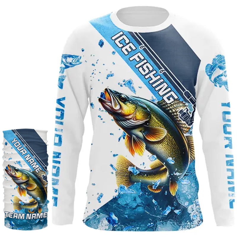 Personalized Blue Ice Walleye Ice Fishing Shirts Custom Walleye Long Sleeve Fishing Jersey for Team NQS9289