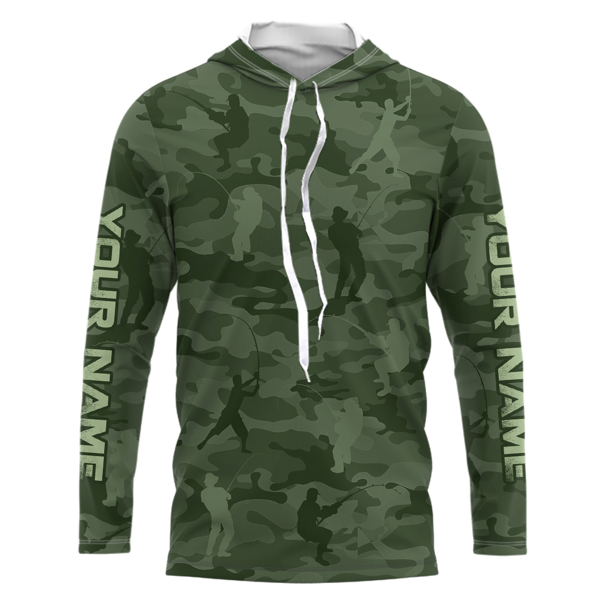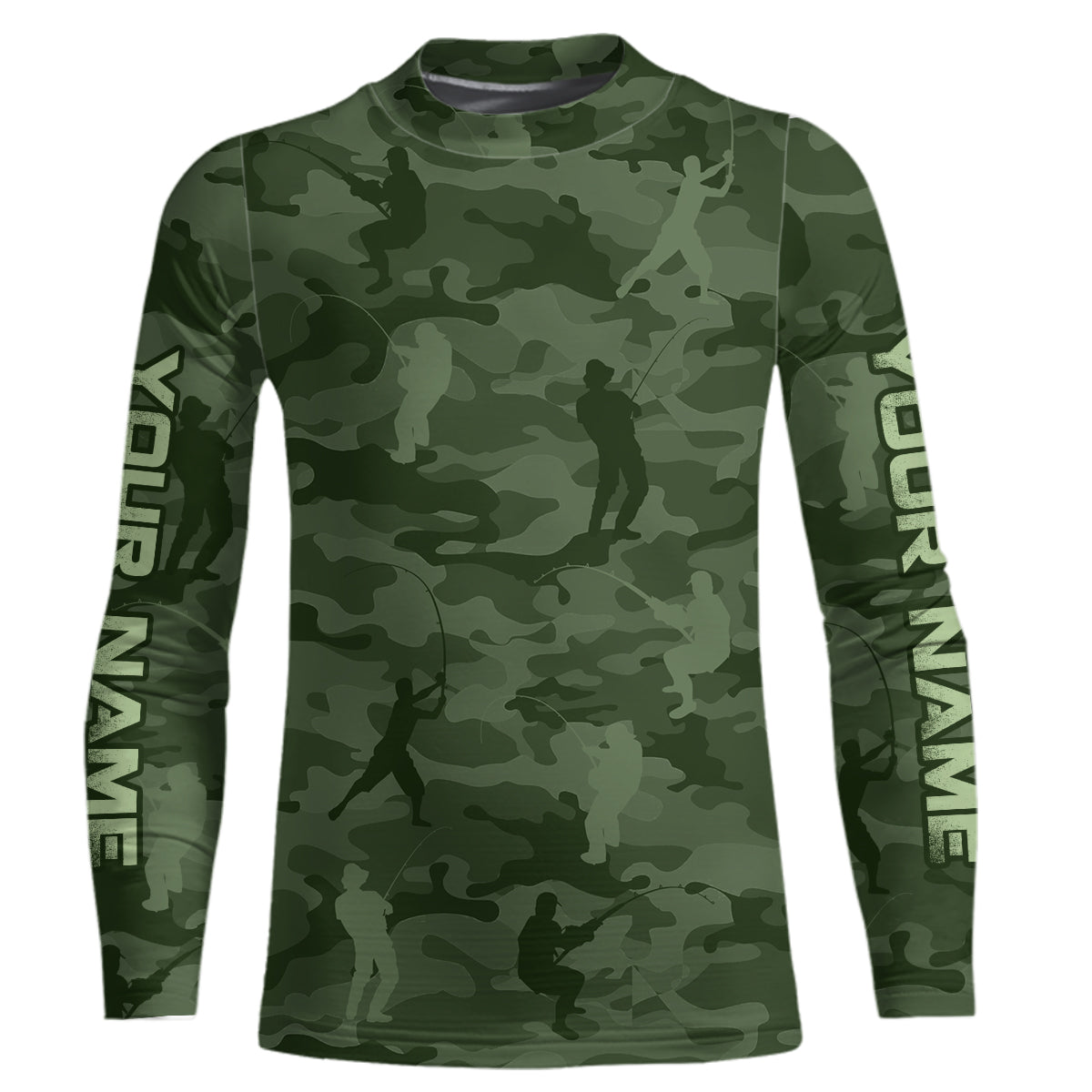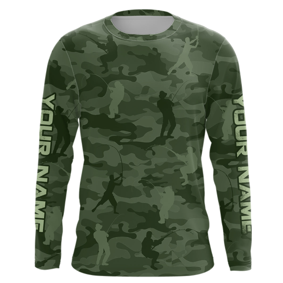 Personalized green fishing camo Performance long sleeve Fishing Shirts, team fishing tournament jersey NQS6943