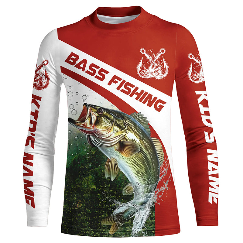 Custom Bass Fishing Long Sleeve Tournament Fishing Shirts, Bass Performance Fishing Jerseys | Red IPHW5801