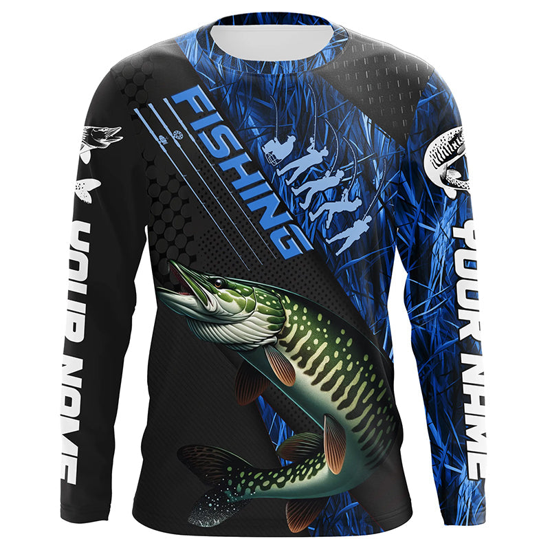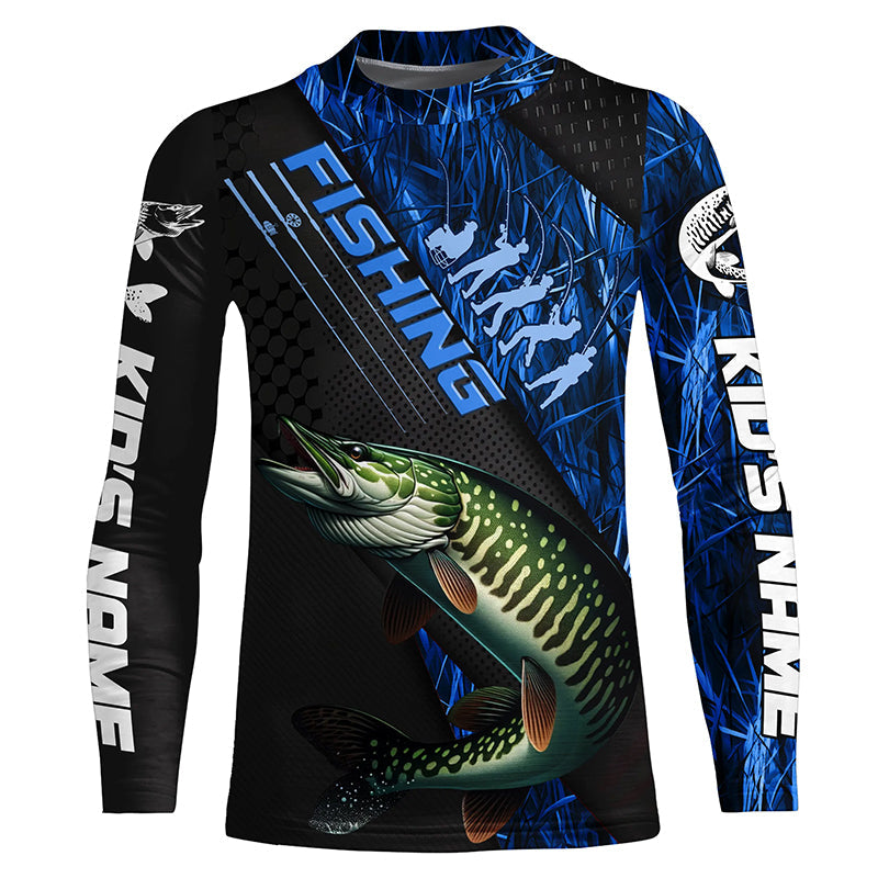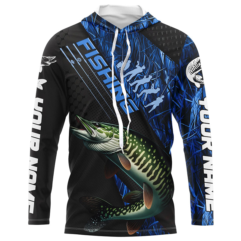 Custom Musky Fishing Long Sleeve Tournament Shirts, Musky Fisherman Jerseys | Blue Camo IPHW6249