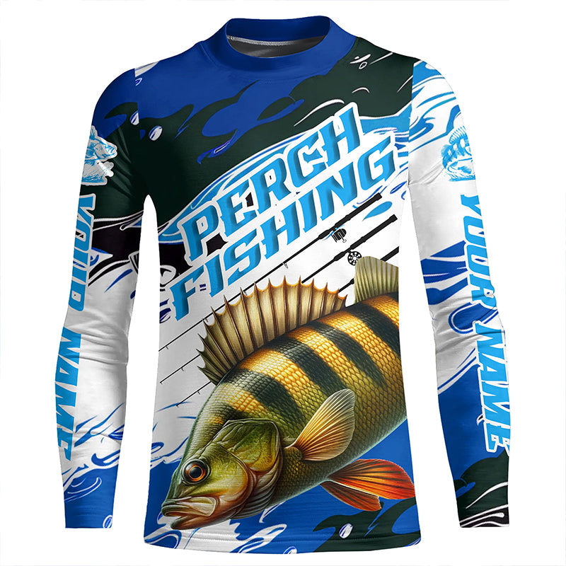 Custom Perch Fishing Jerseys, Perch Long Sleeve Tournament Fishing Shirts | Blue Camo IPHW6282