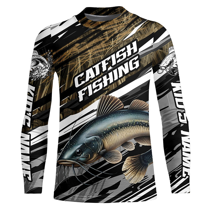 Catfish Fishing Custom Long Sleeve Tournament Fishing Shirts, Catfish Fishing Jerseys Grass Camo IPHW7020
