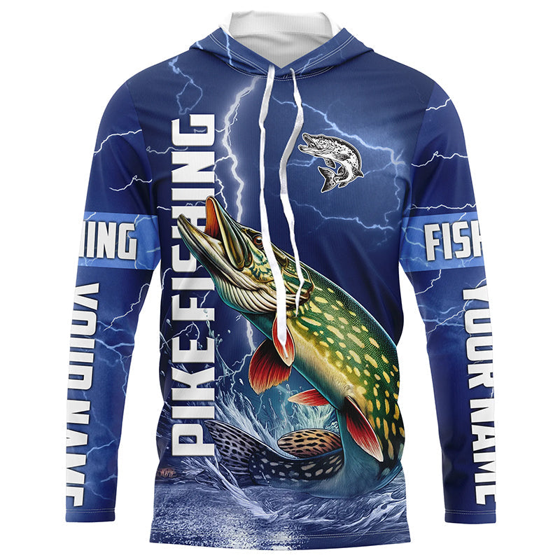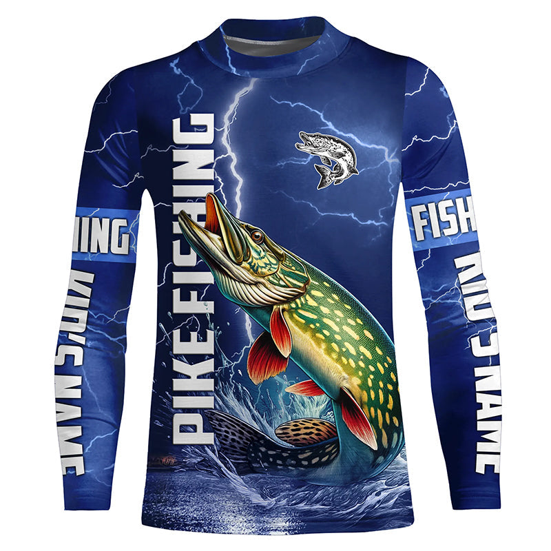 Northern Pike Fishing blue lightning jerseys custom performance Long Sleeve tournament fishing shirts NQS8147