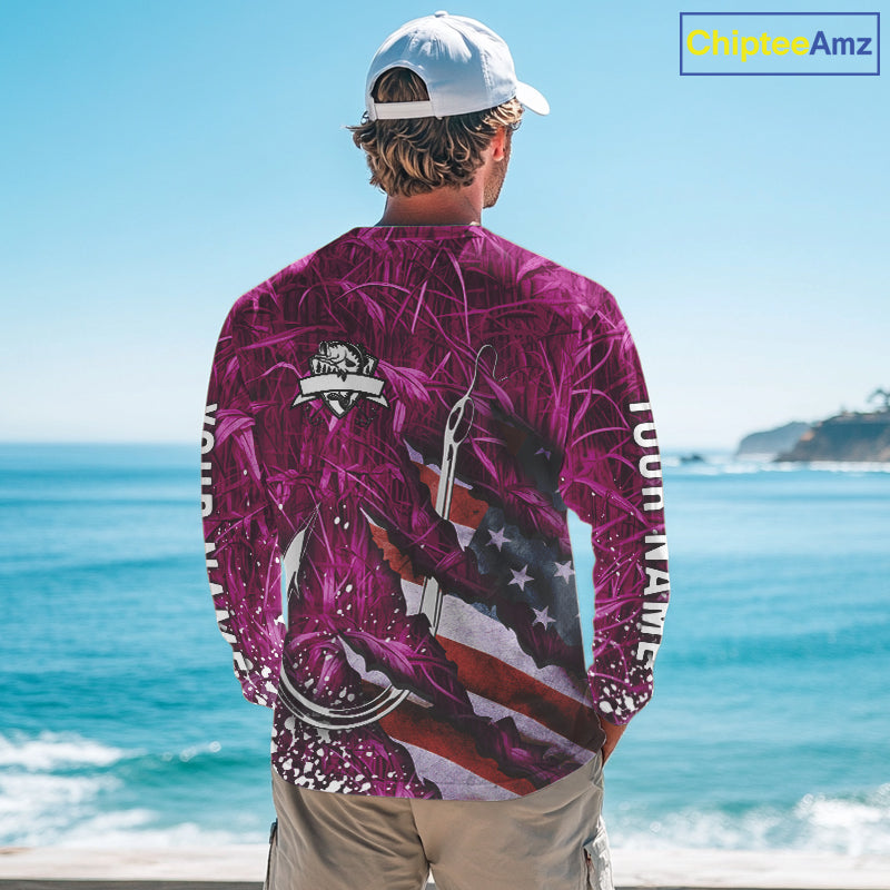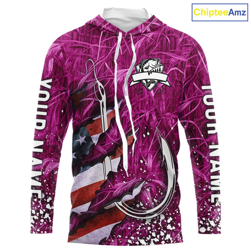 American flag fish hook pink camo fishing custom sun protection performance long sleeve fishing shirt NQS10011
