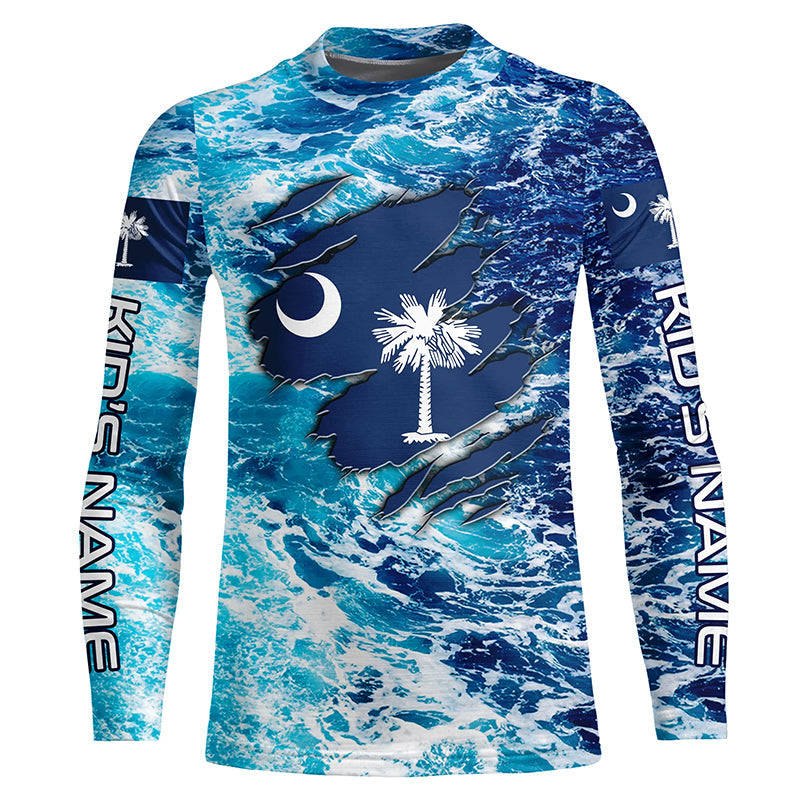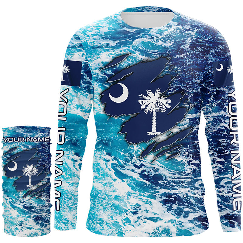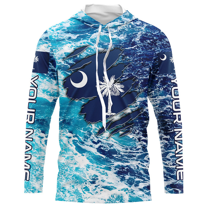 Blue sea wave ocean camo South Carolina flag patriot shirts Custom sun protection fishing shirts NQS8165