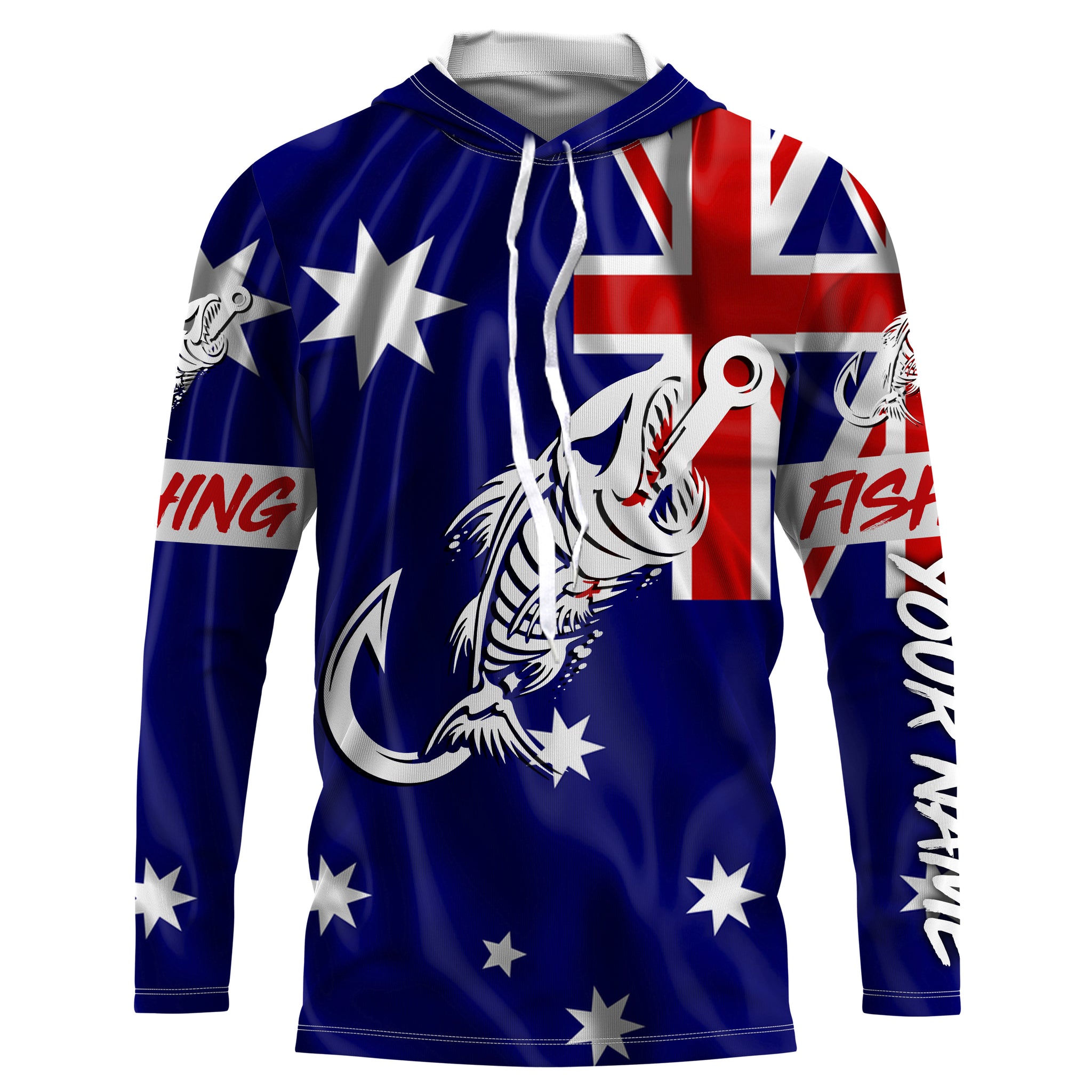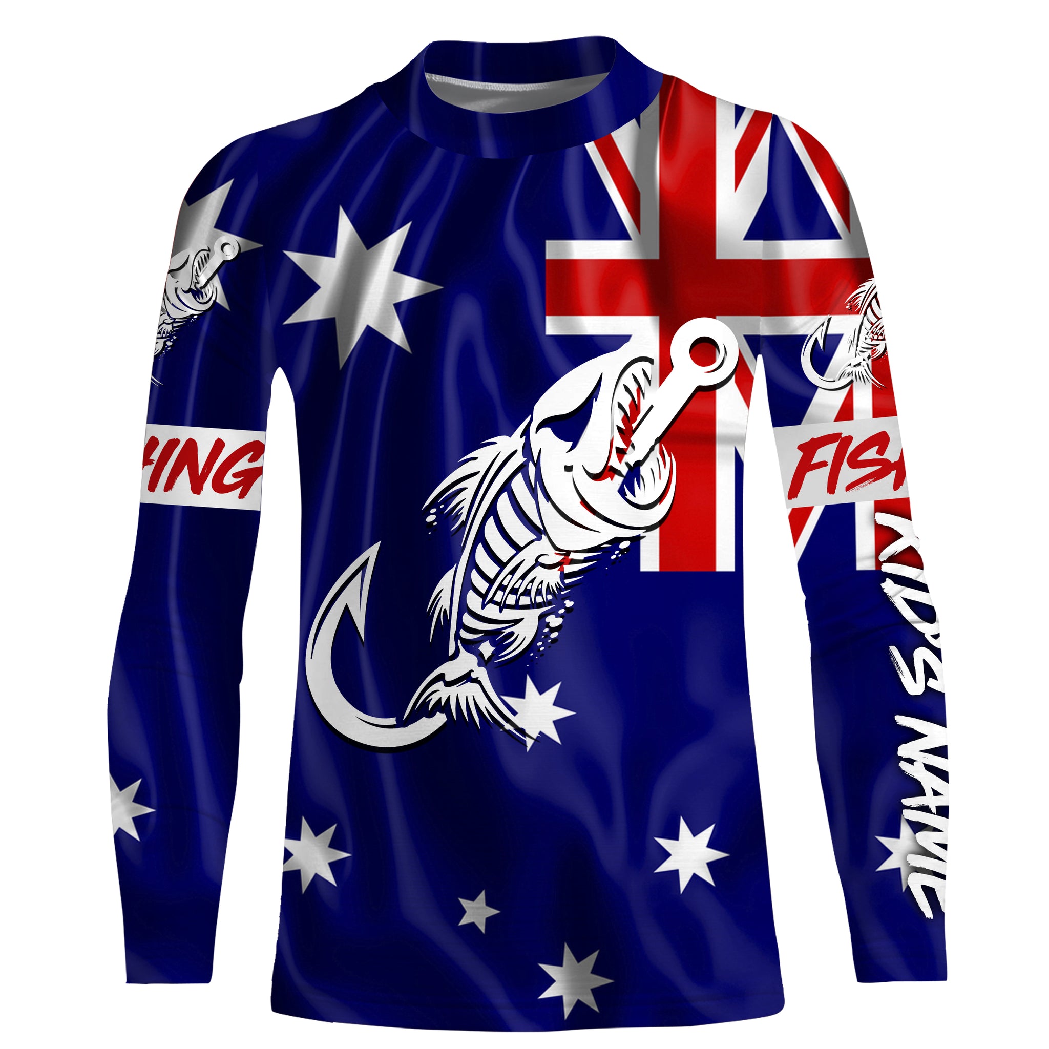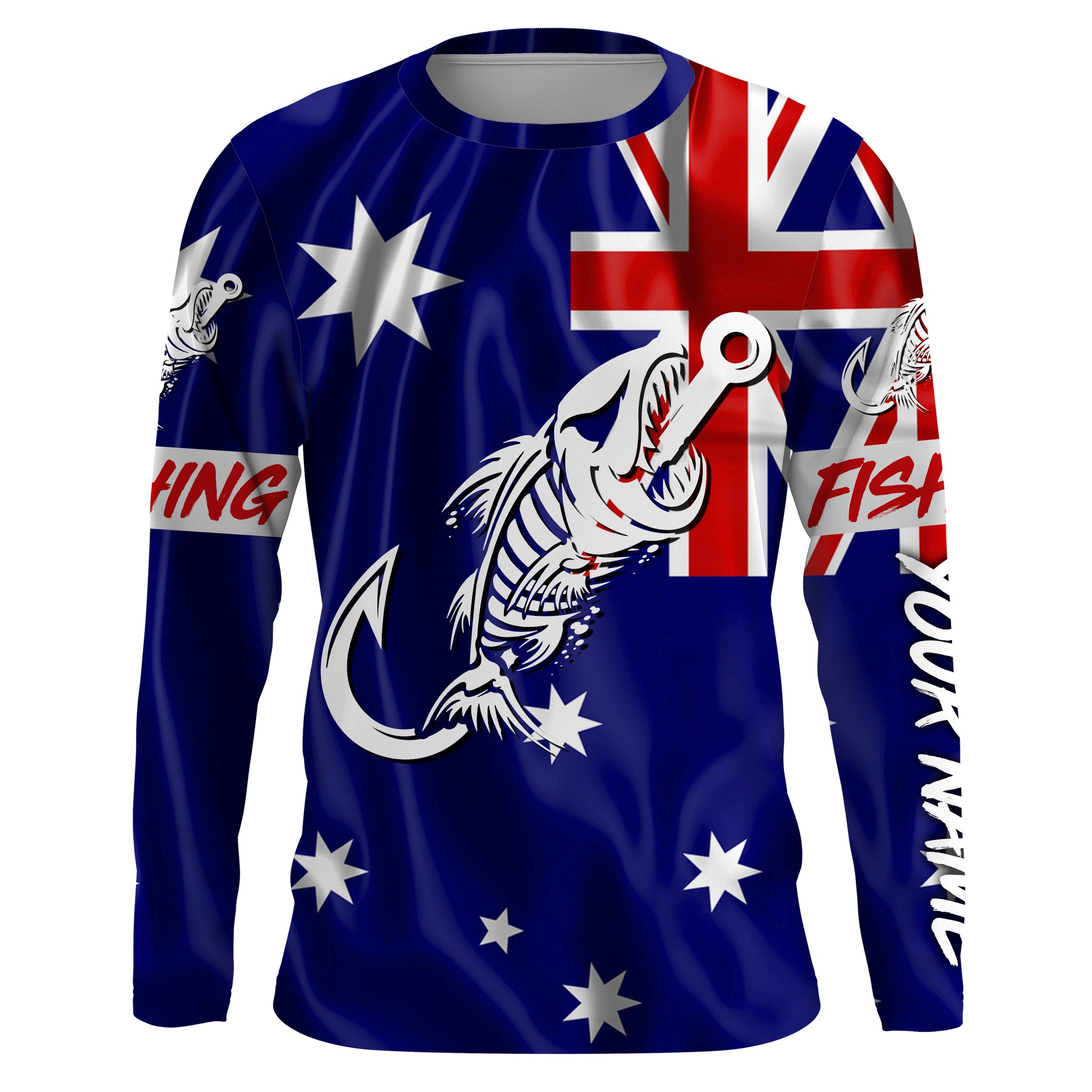 Customized Australian long sleeve fishing shirts Australian Flag Fish hook skull performance shirts NQS3325