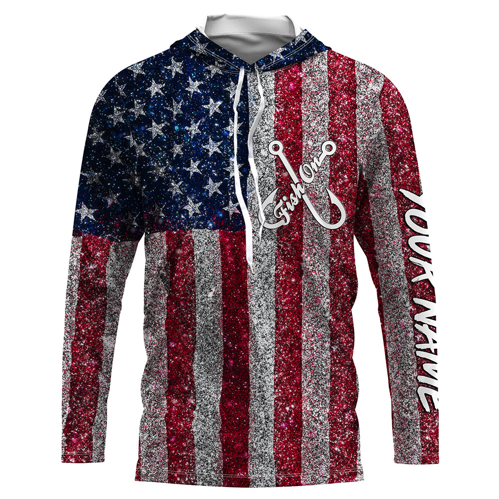 Fish On American Flag UV Protection Custom Long Sleeve Shirts Patriotic Fishing Jersey TTN127