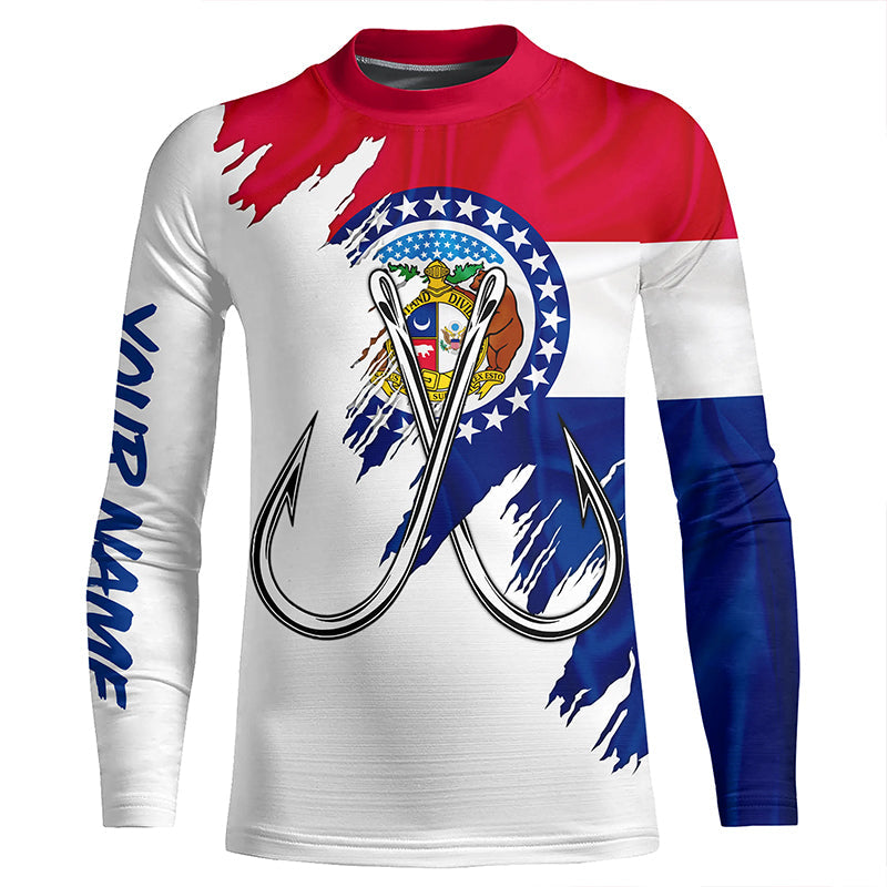 Missouri flag MO Fishing Fish Hook UV protection custom long sleeve Patriotic fishing apparel NQS8271