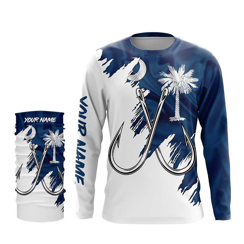 South Carolina flag SC Fishing Fish Hook UV protection custom long sleeve Patriotic fishing apparel NQS8018