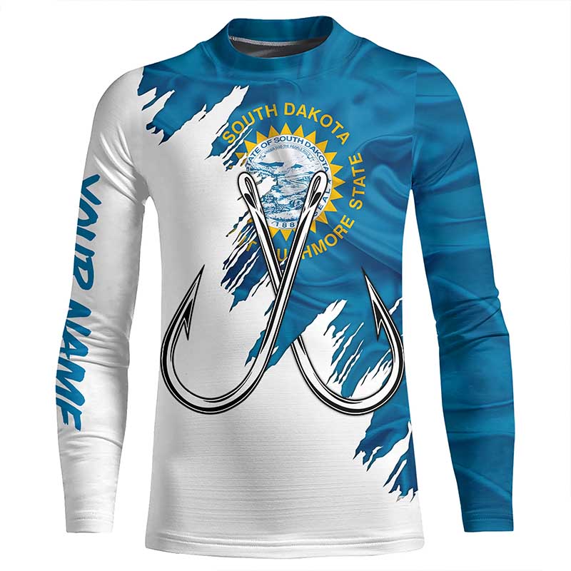 South Dakota flag SD Fishing Fish Hook UV protection custom long sleeve Patriotic fishing apparel NQS8017