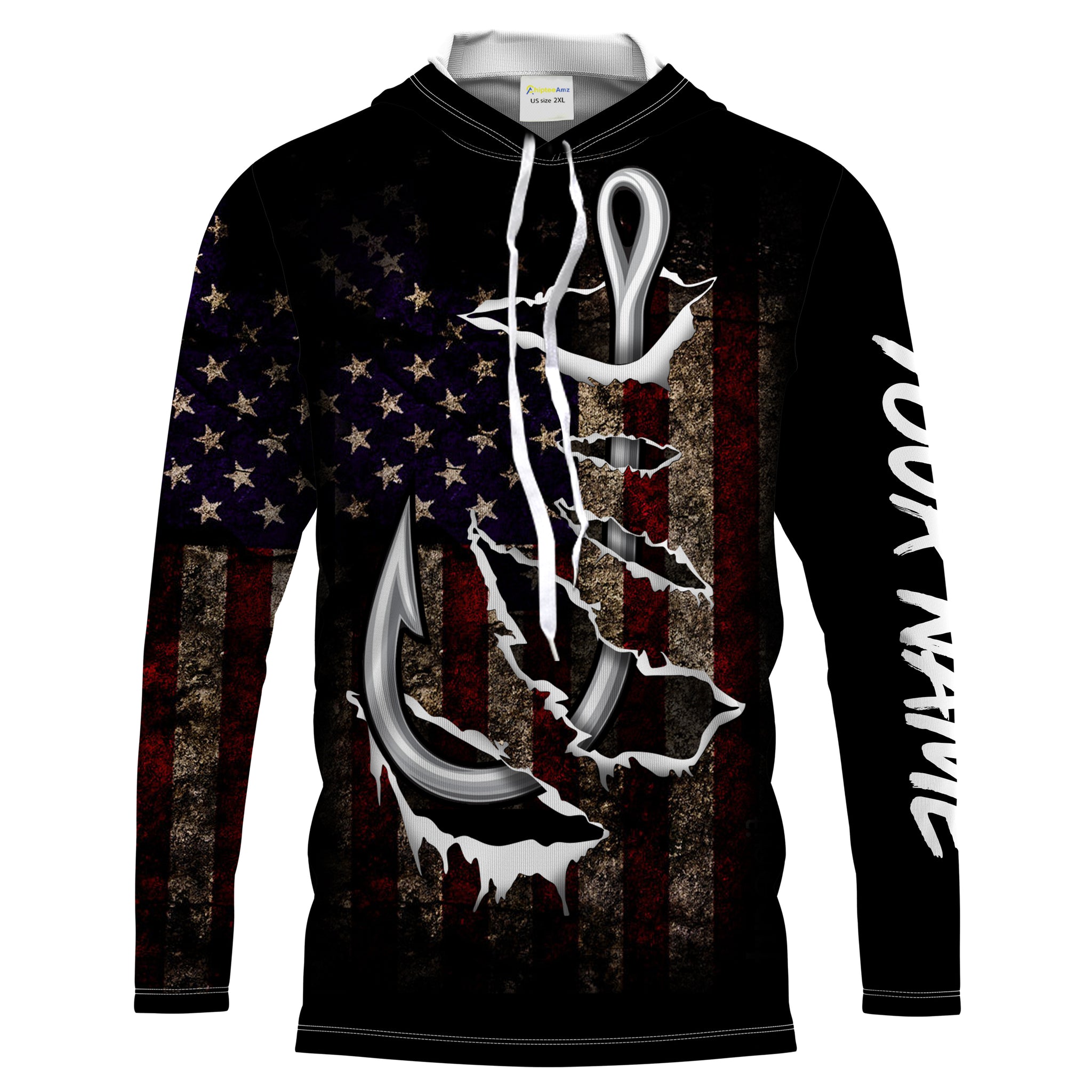US Fishing 3D Fish Hook American Flag patriotic UV protection customize name long sleeves shirts UPF 30+ fishing apparel NQS2161