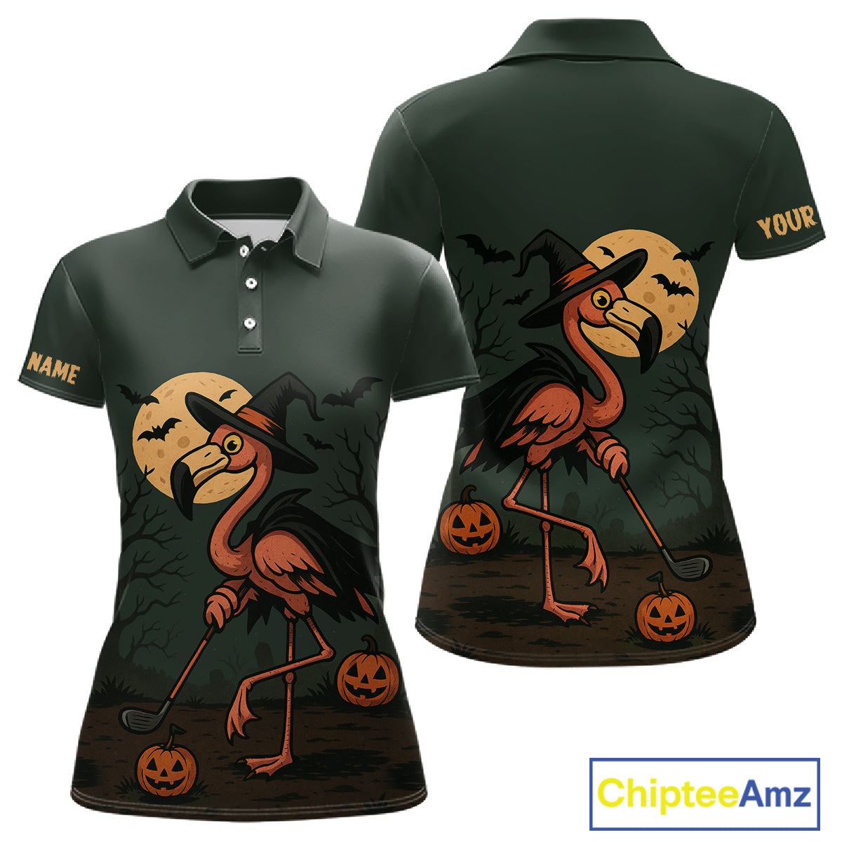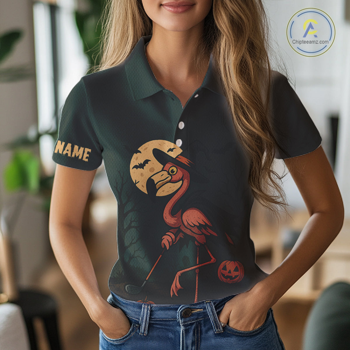 Halloween flamingo Women golf polo shirt custom Halloween golf tops for ladies, unique golf gifts NQS10378