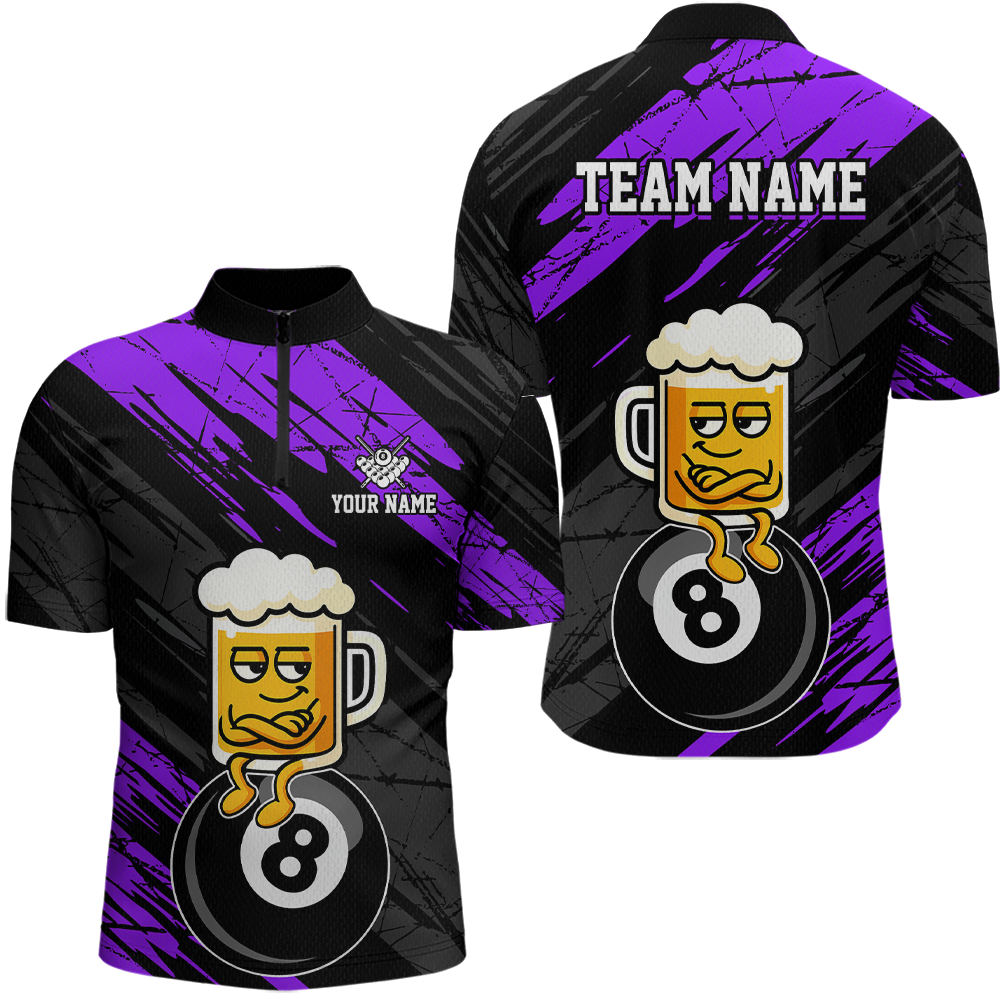 Custom Purple Funny Beer 8 Ball Billiard Shirts for Men Billiard Team Shirts Polo & 1/4 Zip NNT78