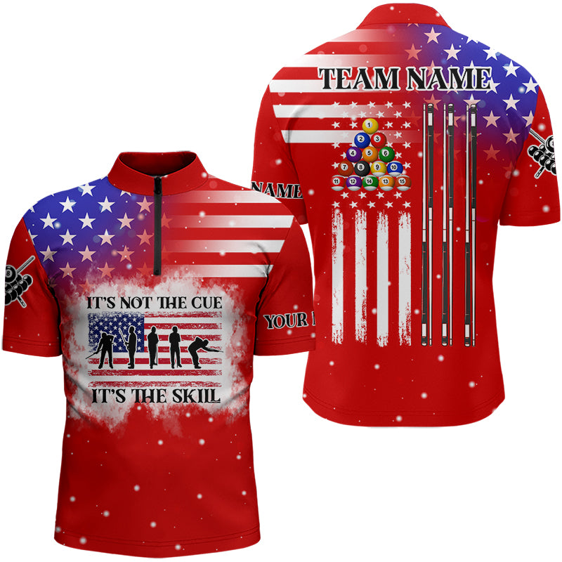 It's The Skill Custom American Flag Men Billiard Shirt Funny Billiard Jersey |Red TDM3121