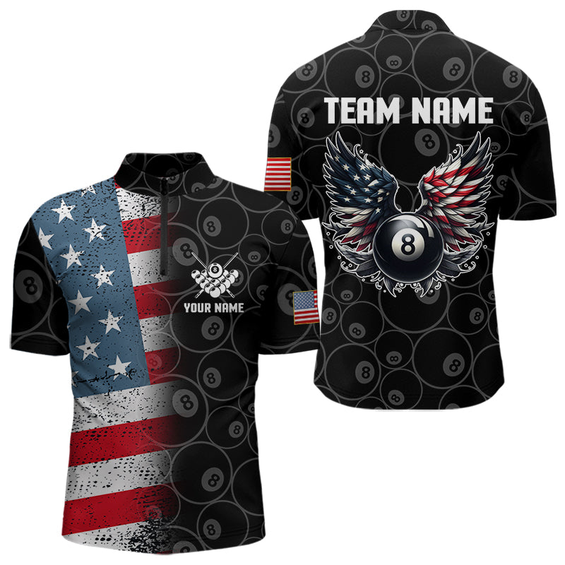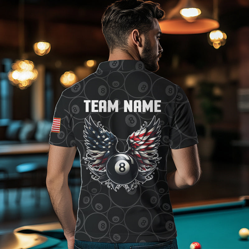 Personalized US Flag Funny 8 Ball Pool Wings Billiard Shirts For Men, American Team Billiard Jersey TDM3634