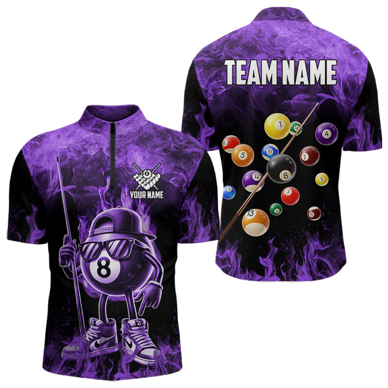 Personalized Purple Funny 8 Ball Pool Flame Men's Billiard Shirts, Billiard Team Shirts Pool Jerseys TDM3782