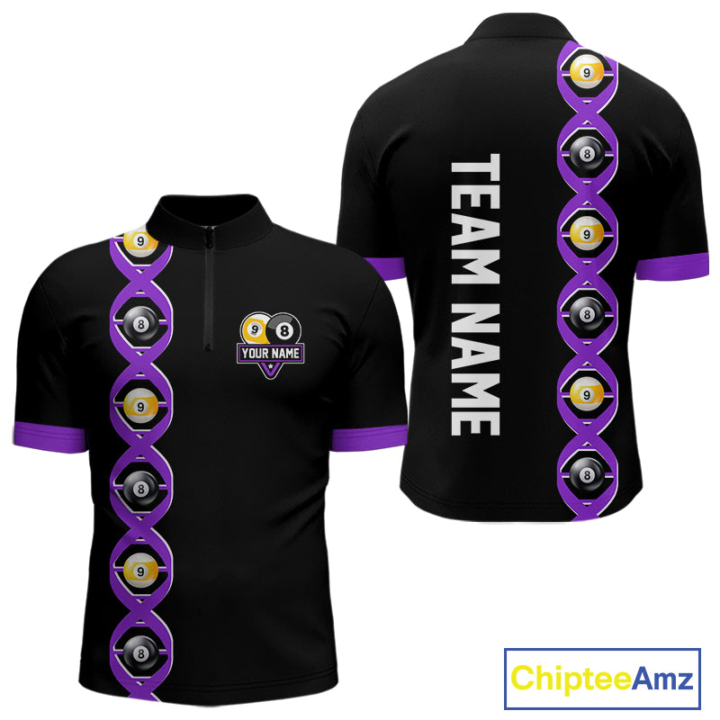DNA Billiard 8 Ball & 9 Ball Shirts For Men Custom Funny Pool Jerseys Team Polo & 1/4 Zip |Purple TDM4393