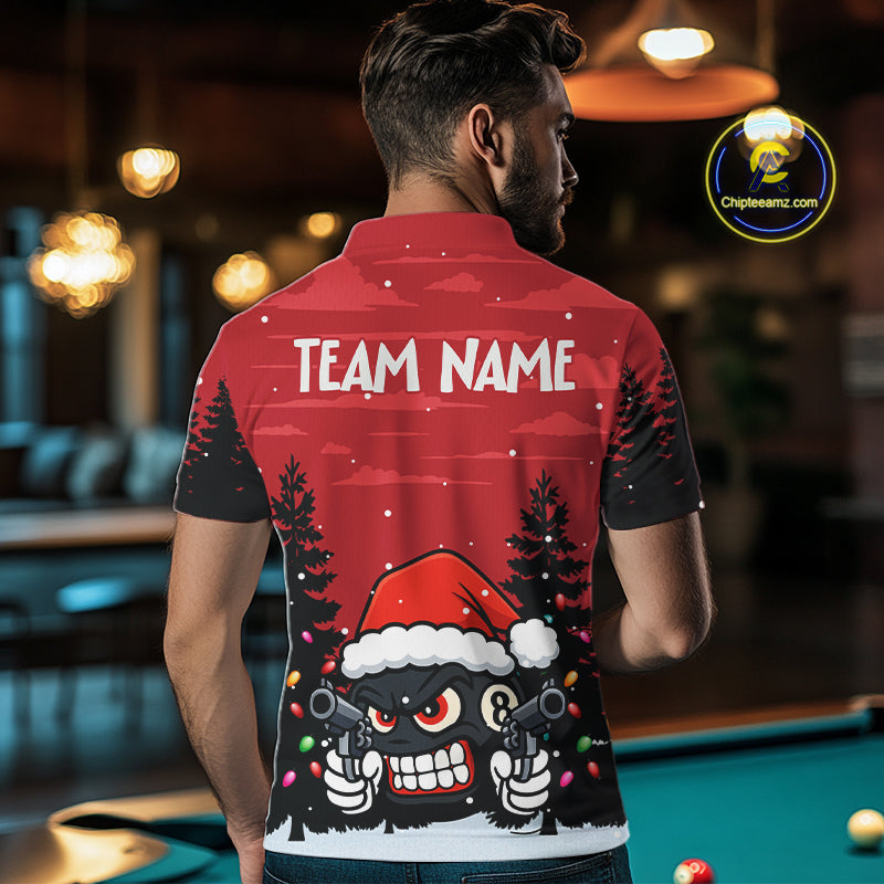 Personalized Red Christmas Santa 8 Ball Pool Billiard Shirts For Men, Funny Xmas Billiard Jerseys TDM5221