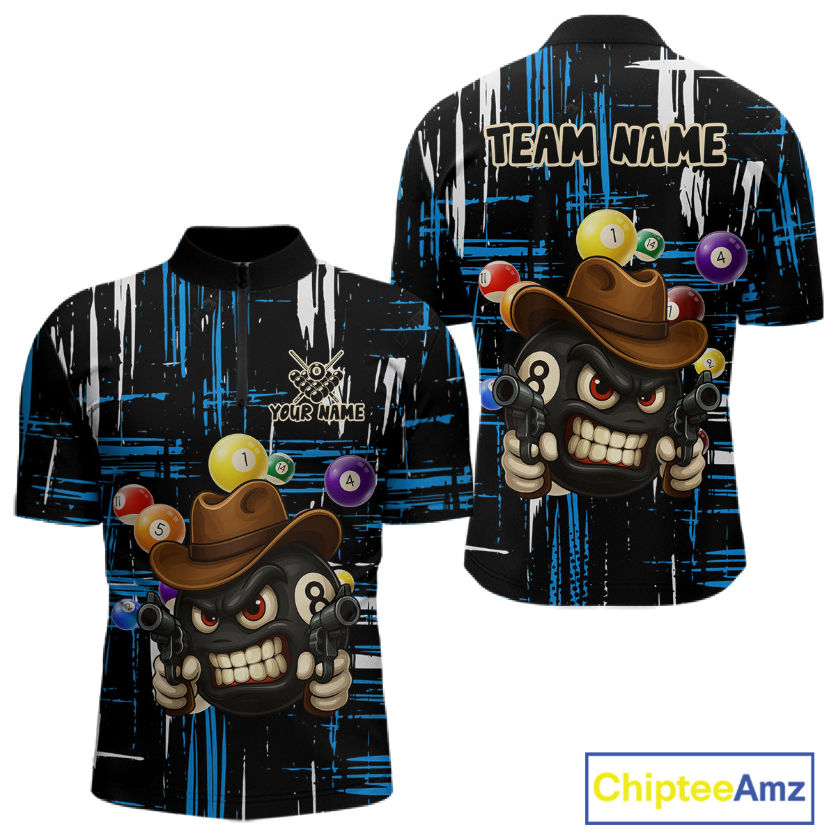 Personalized Blue Grunge Funny 8 Ball Billiard Shirt For Men, Pool Team Jersey Polo & 1/4 Zip TDM5286