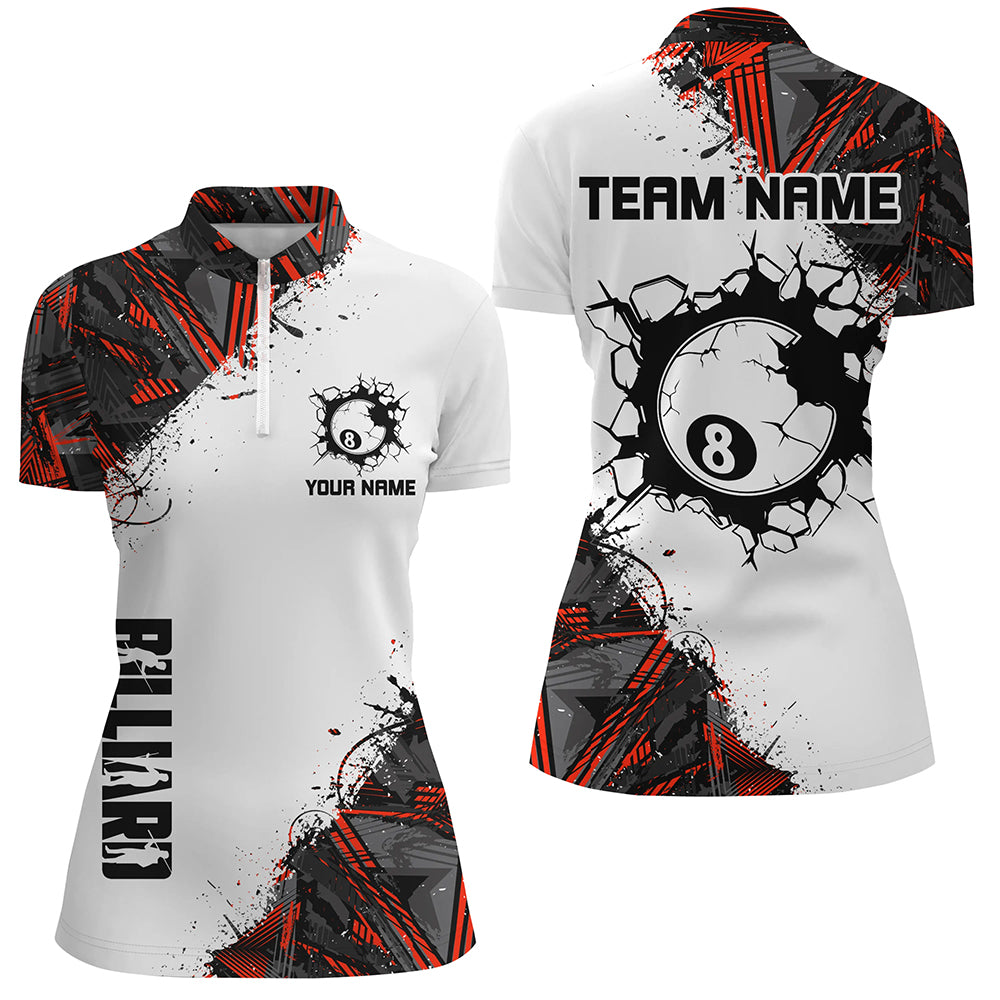 Personalized Grunge Funny 8 Ball Pool Crack Women Polo & Quarter-Zip Shirts, Billiard Jerseys Apparel TDM1672