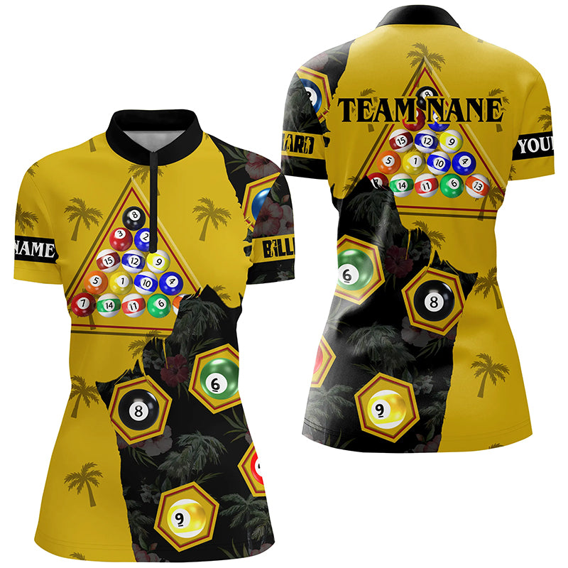 Personalized Yellow Black Funny Billiard Balls Pool Shirts For Women, Best Billiard Team Shirts TDM2073