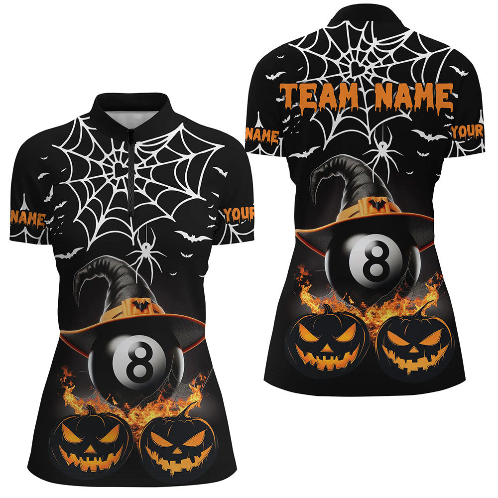 Personalized Halloween 8 Ball Pool Funny Pumpkin Billiard Shirts For Women, Halloween Billiard Gifts TDM2309