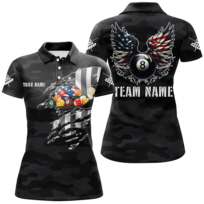 Personalized Camouflage US Flag Billiard Balls Shirts For Women, Funny Billiard 8 Ball Wings Jerseys VHM1197