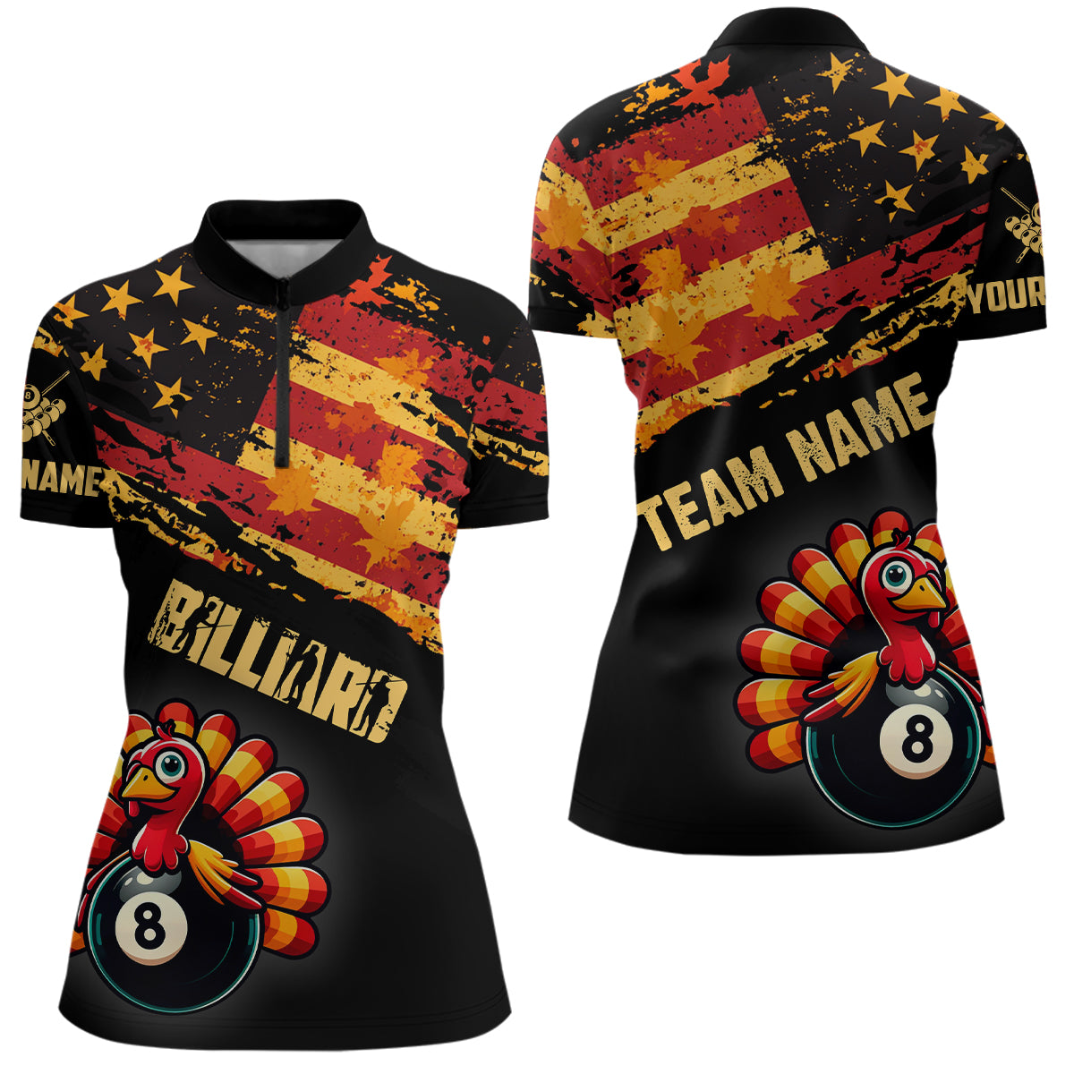 Funny Turkey Retro Autumn American Flag Women Billiard Jerseys Patriotic Thanksgiving Billiard Shirts TDM2819