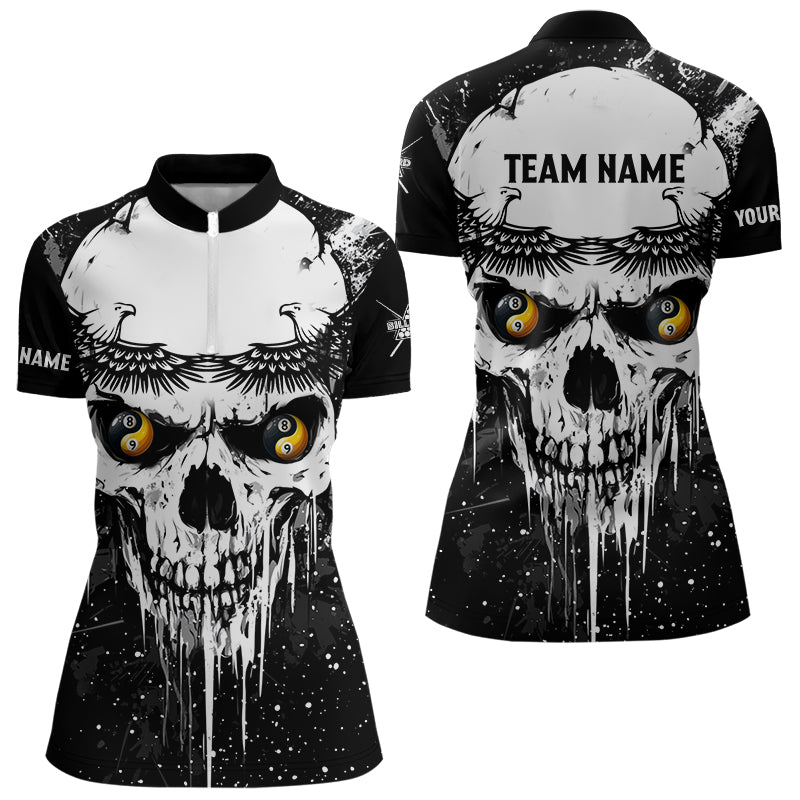 Personalized Black White Grunge Skull Ying And Yang Eyes Women Billiard Shirts, Funny Billiard Jersey TDM3166