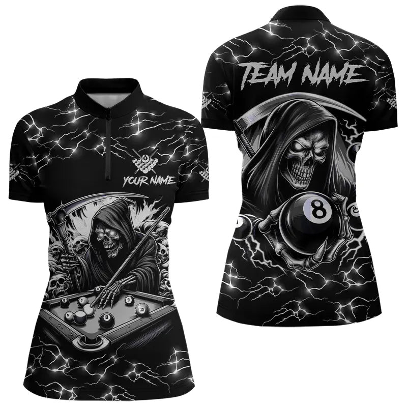 Black White Funny Death Skeleton 8 Ball Pool Women Billiard Shirts Custom Lightning Billiard Jerseys TDM3726