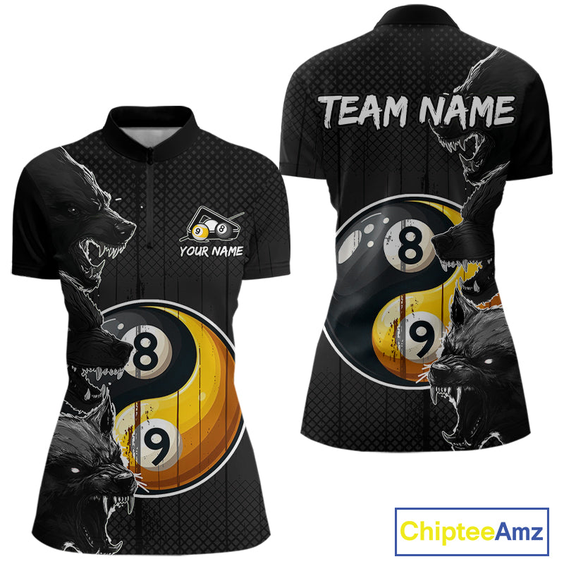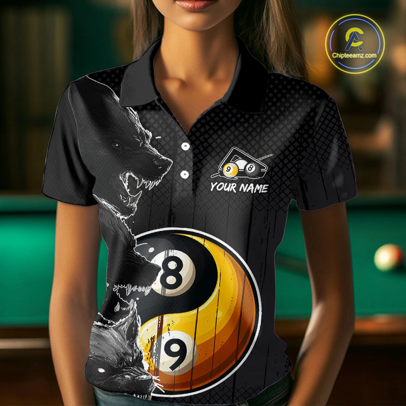 Funny Yin Yang Eyes Of Wolf Billiard Shirts For Women Custom 8 & 9 Ball Billiard Jersey | Black TDM4442