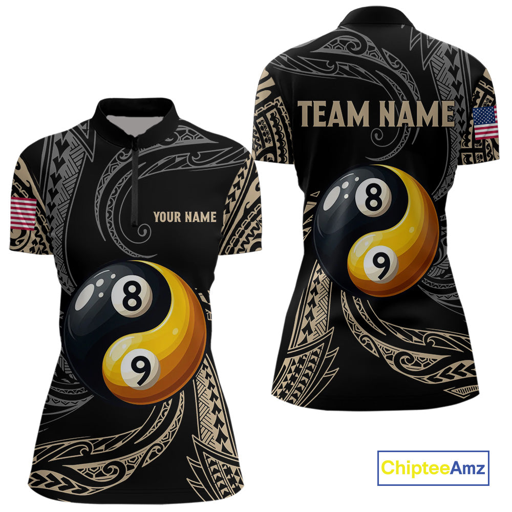 Personalized Funny Yin And Yang Tribal Billiard Shirt For Women Custom 8 Ball & 9 Ball Pool Jerseys TDM4506