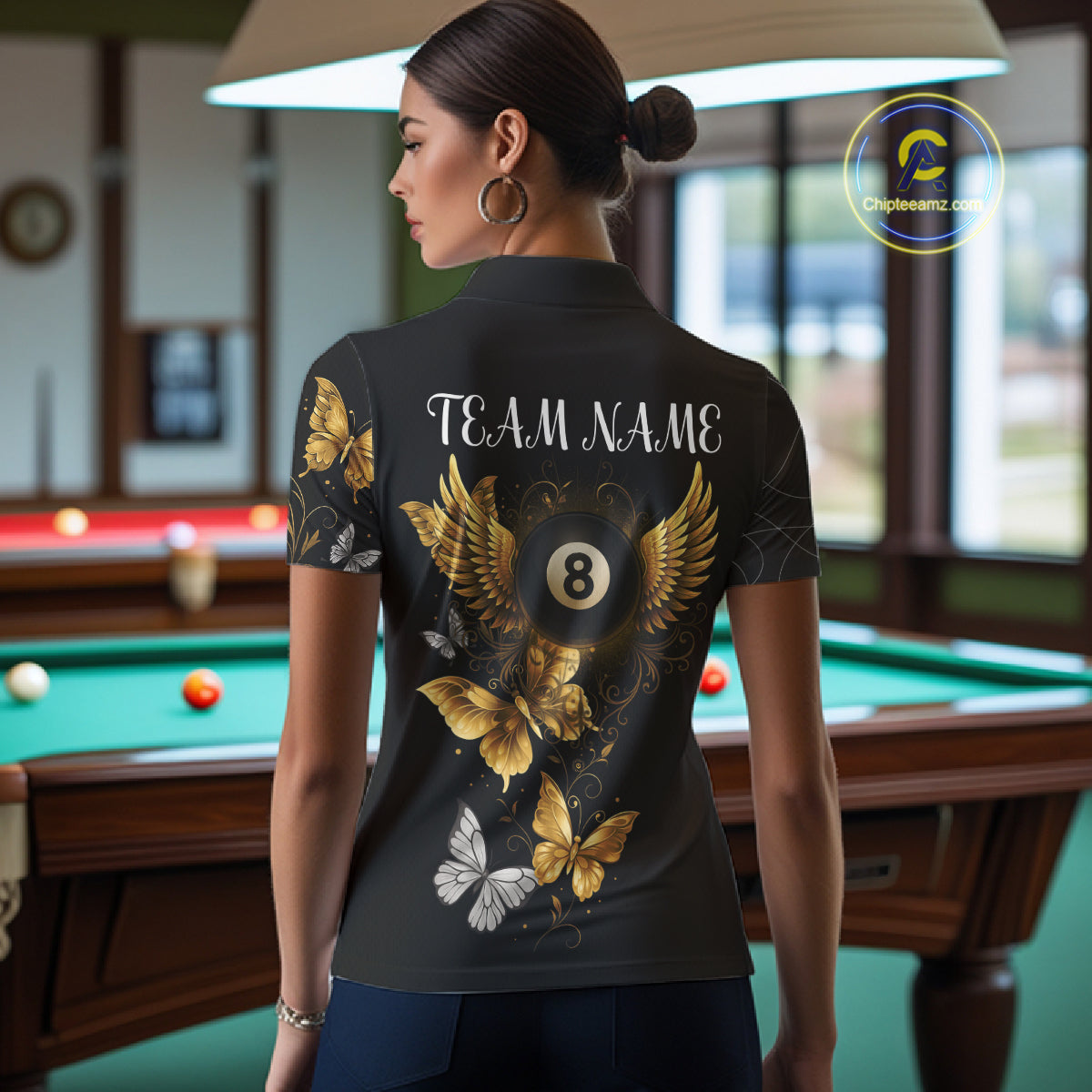 Personalized Golden 8 Ball Wings Butterflies Billiard Shirt For Women Custom Funny Pool Team Jersey TDM4777