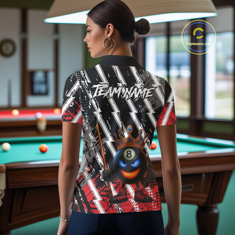 Funny 8 Ball Pool Crown Billiard Shirt For Women Custom Billiard Jersey Team Polo & 1/4 Zip |Red TDM5081