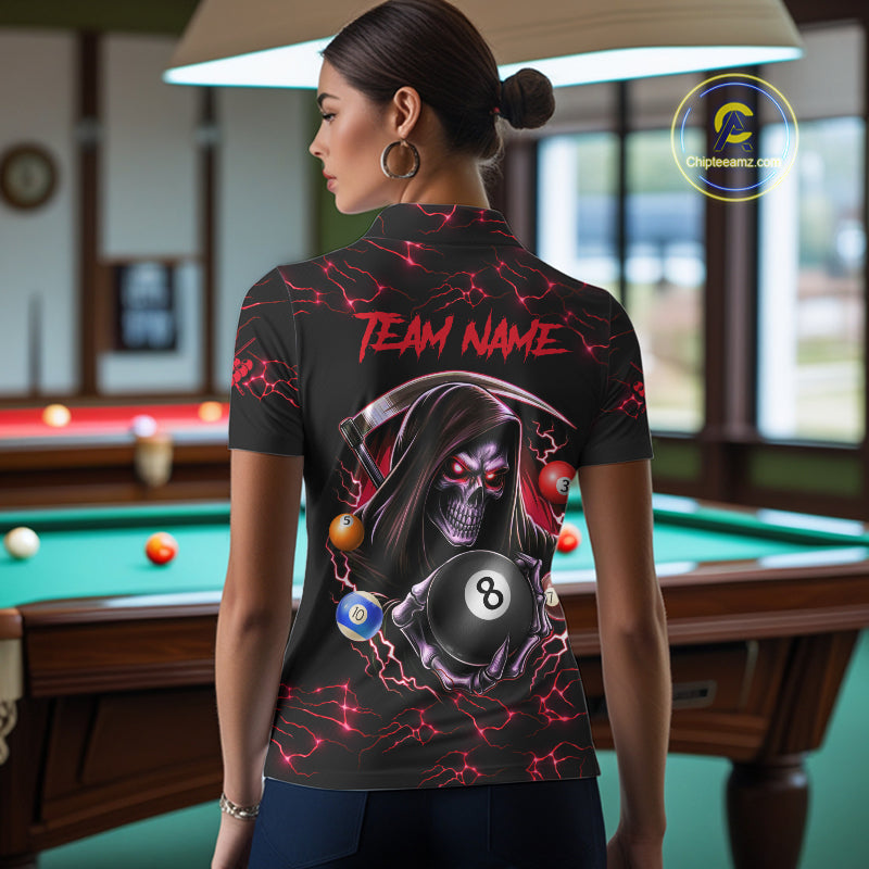 Red Funny Grim Reaper 8 Ball Pool Women Billiard Shirts Custom Billiard Jersey Team Polo & 1/4 Zip TDM5241
