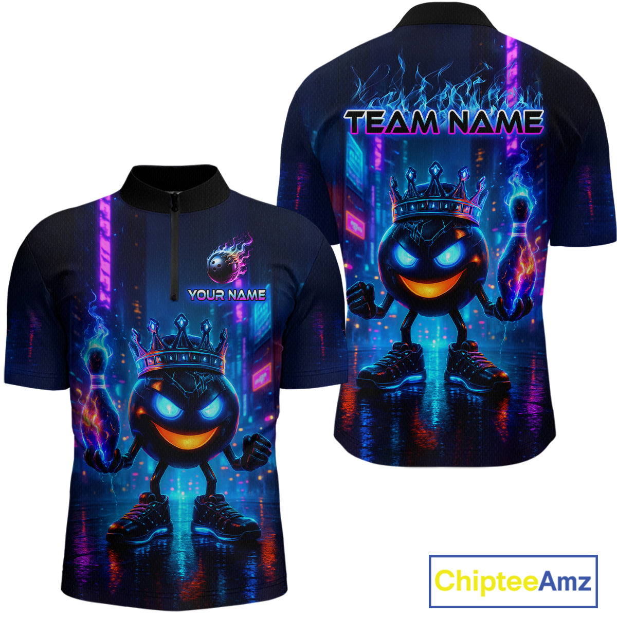 Custom Neon Lightning Bowling Shirt Funny Men Bowling Team Jersey Polo & 1/4-Zip Bowling Outfit QZT740