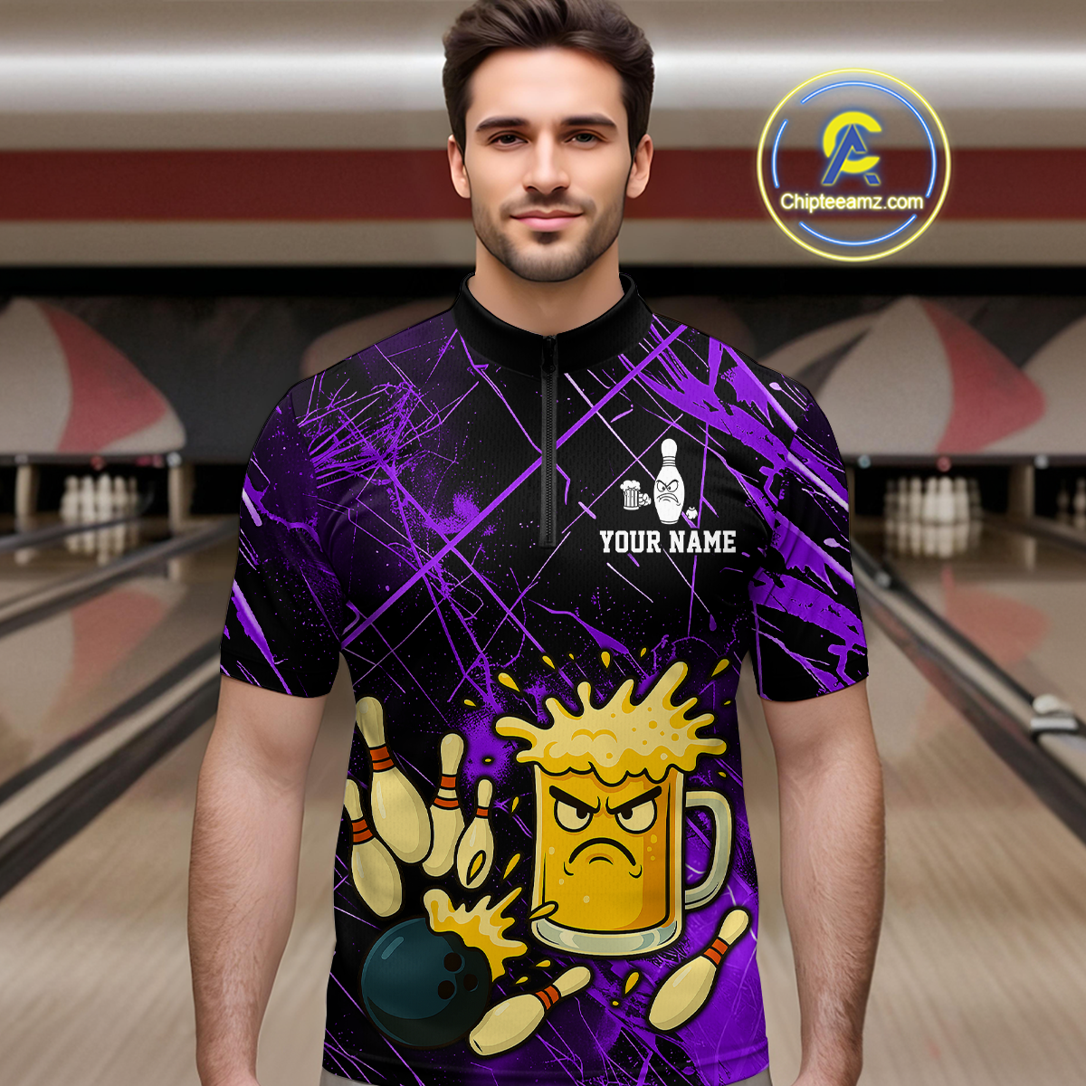 Custom Purple Funny Beer Bowling Shirt Team Bowling League Jersey for Men Bowling Outfit QZT767