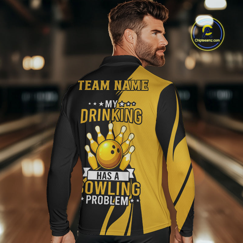Funny yellow and black Bowling beer shirts for men custom My drinking team has a bowling problem NQS9927
