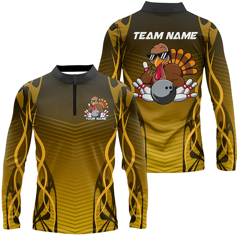Custom Funny Turkey Bowling Team Shirts For Men, Thanksgiving Bowling Uniform Bowler Outfit IPHW7873
