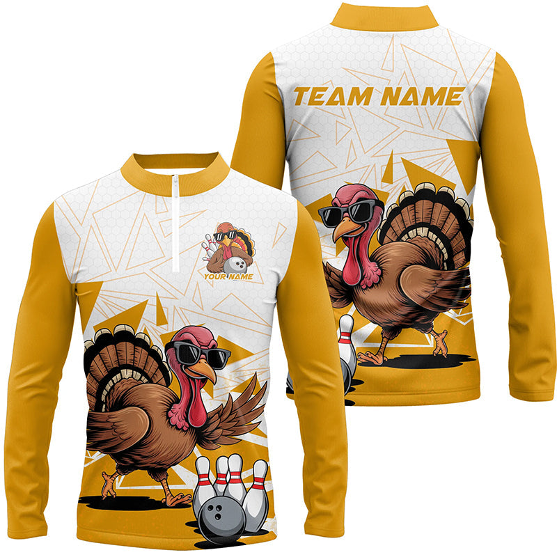 White And Yellow Custom Funny Turkey Bowling Shirts For Men, Thanksgiving Bowling Team Jerseys IPHW7875