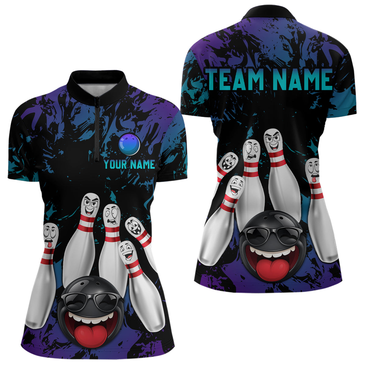 Teal Purple Funny Bowling Team Shirt for Women Custom Bowling League Jersey Polo Bowler Outfit QZT781