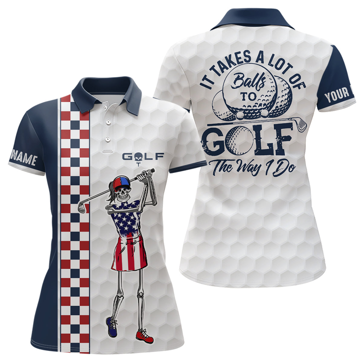 Customized Skull Golf Polo Shirt Checkerboard Funny Golf Shirts For Women, Crazy Golf Gifts LDT0296