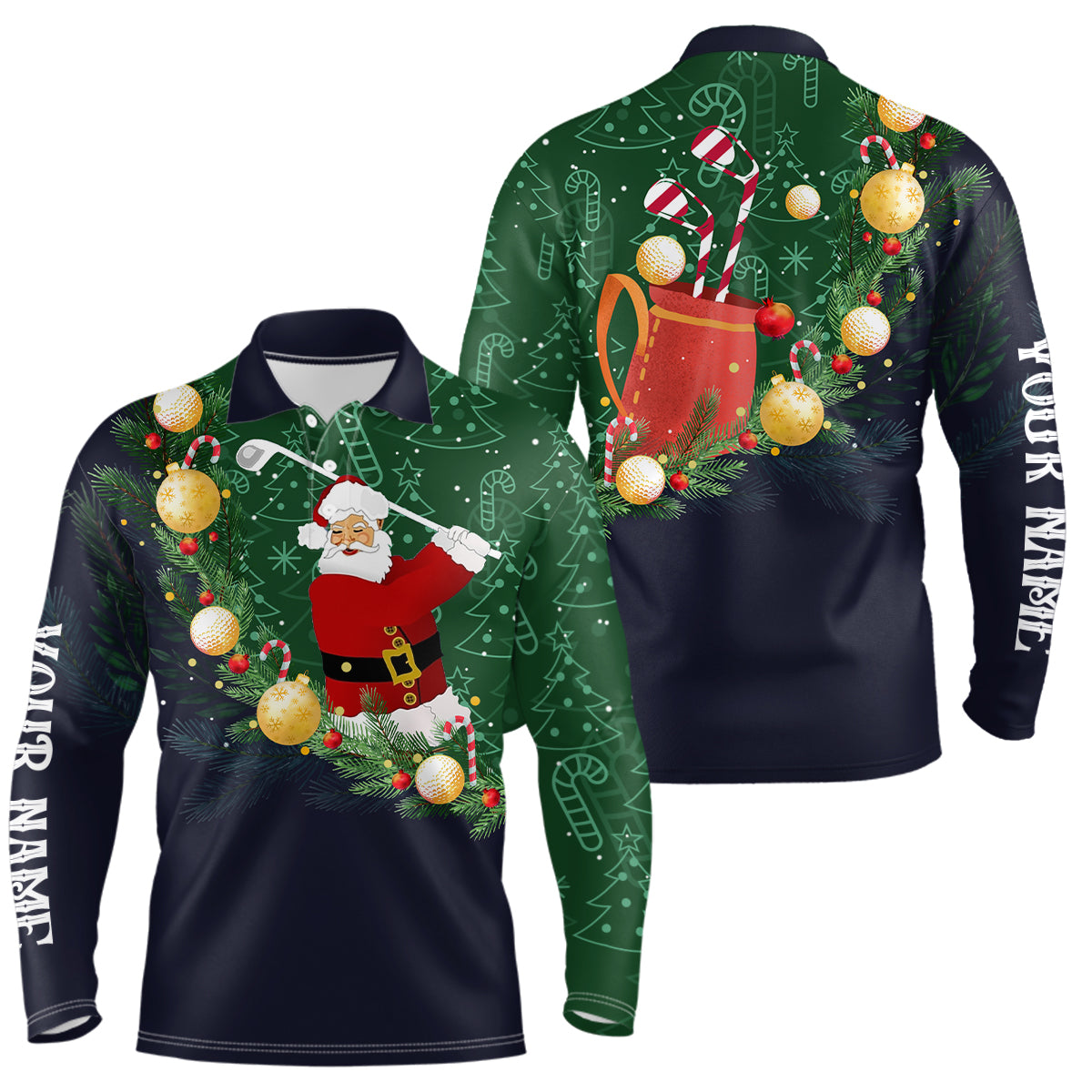 Santa Playing Golf Navy Mens Polo Shirts Christmas Golf Shirts For Men Best Golf Gifts LDT0478