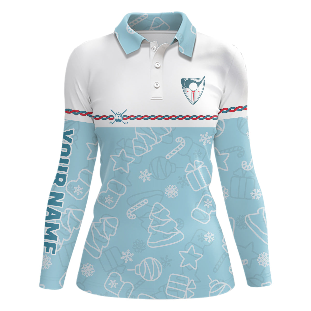 Personalized Blue Christmas Golf Polo Shirts Custom Winter Xmas Cool Golf Shirts For Women LDT0868