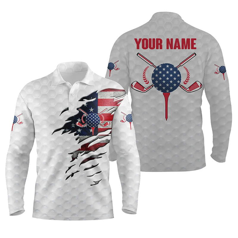 American flag white golf ball skin Mens golf polos shirts custom patriot golf gift, golf shirt for men NQS5227