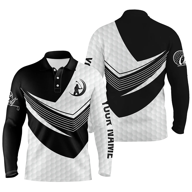 Black and White golf balls skin custom name short sleeve, long sleeve golf polos for mens, golf gifts NQS4802