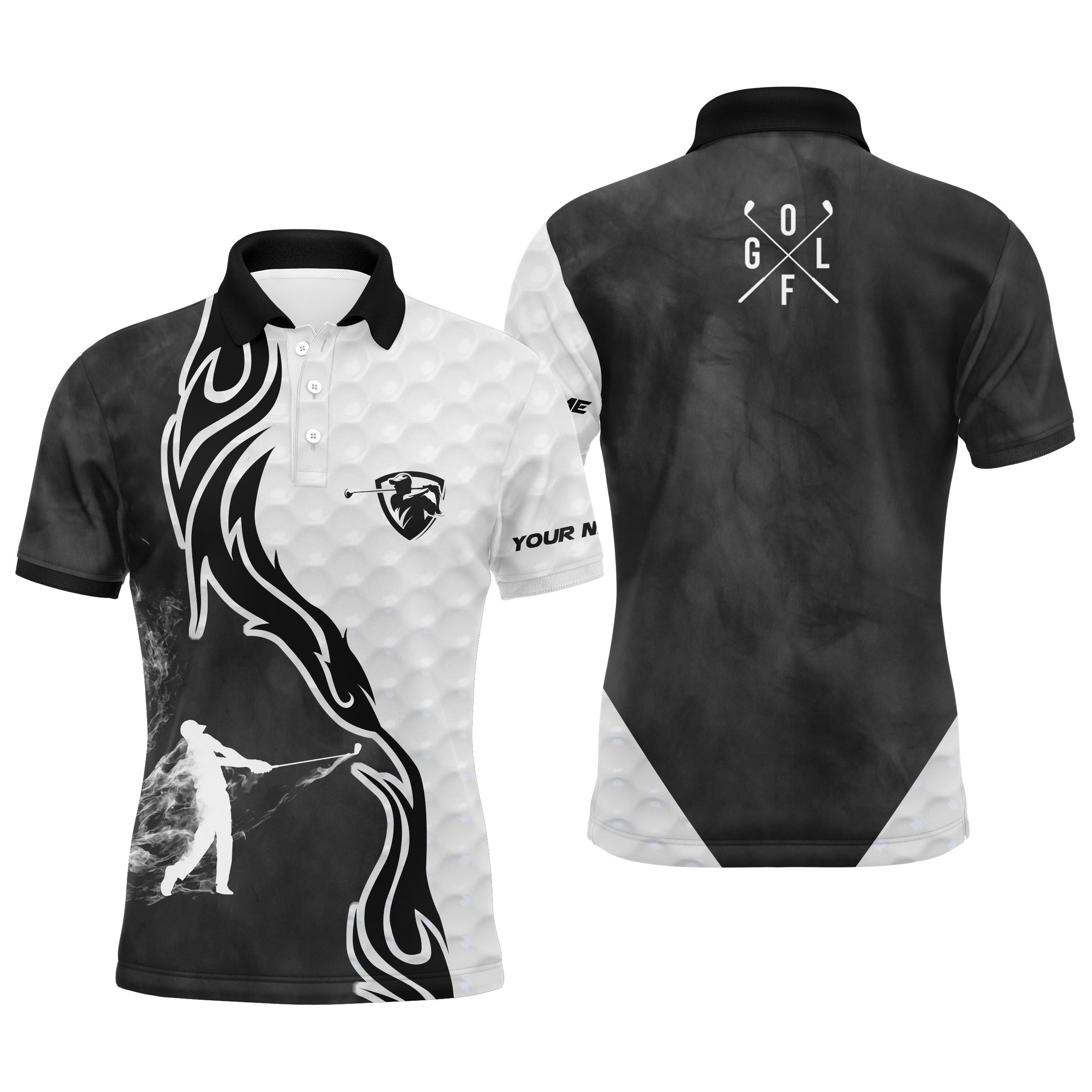 Black and white golf player long sleeve golf polo shirts for mens custom name golfer gifts NQS3670