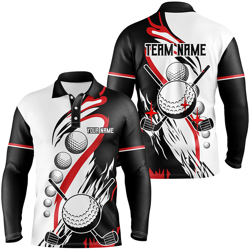 Black and white retro Mens golf polo shirt custom cool golf shirts, golfing gifts | Red NQS7156